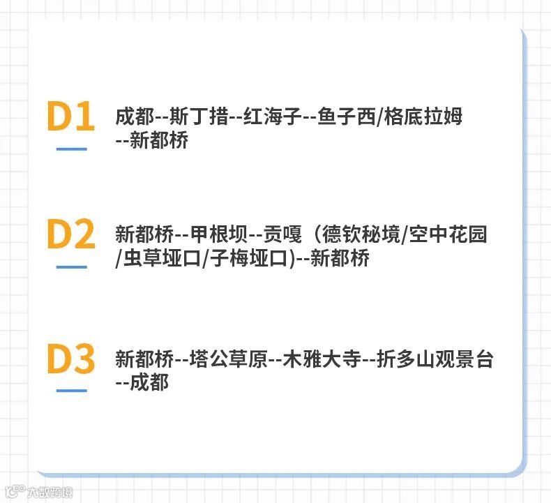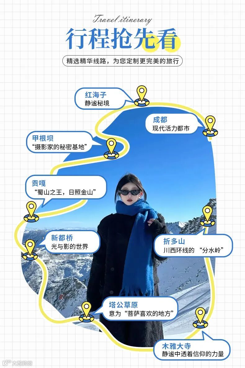 新都桥-塔公草原-木雅大寺-折多山观景台-成都 |