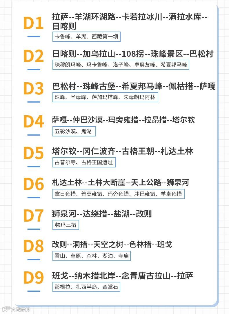 巴松村--珠峰古堡--希夏邦马峰--佩枯措--萨嘎 |