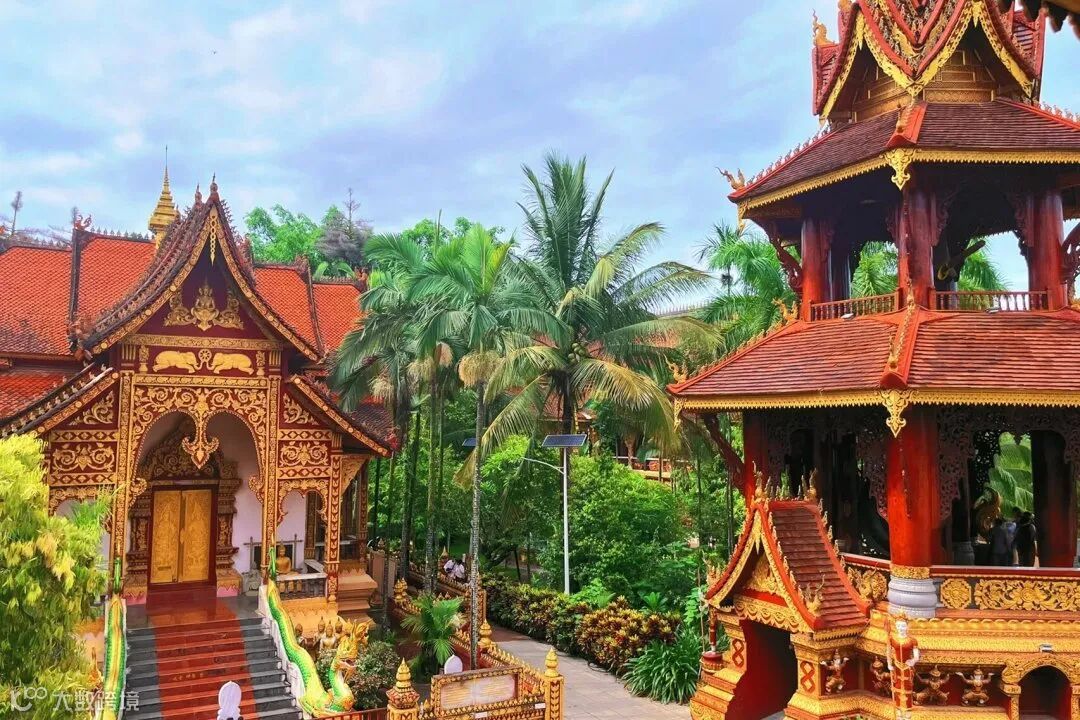 11:00 回到【曼听御花园】,闯入傣王曾经的夏日行宫,菩提树根缠绕着赭红宫墙。孔雀在周总理纪念碑前开屏,金色尖顶与莲花池倒影重叠。仿藤编的咖啡座散落园中,冰滴咖啡的醇苦里,竟尝出十四世纪王室爱情的余韵。