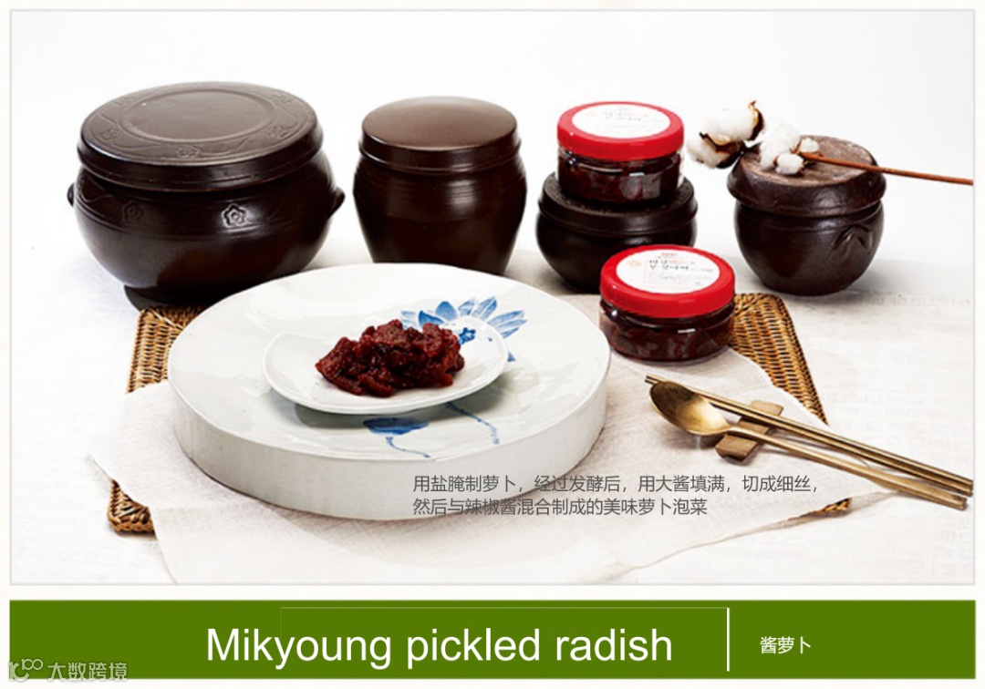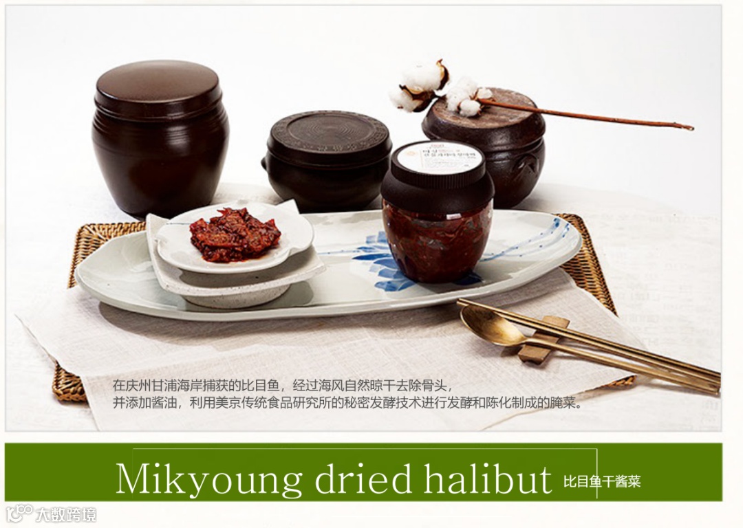 产品:比目鱼干酱菜/野生海藻酱菜/酱萝卜/混合辣椒酱/淡辣椒酱