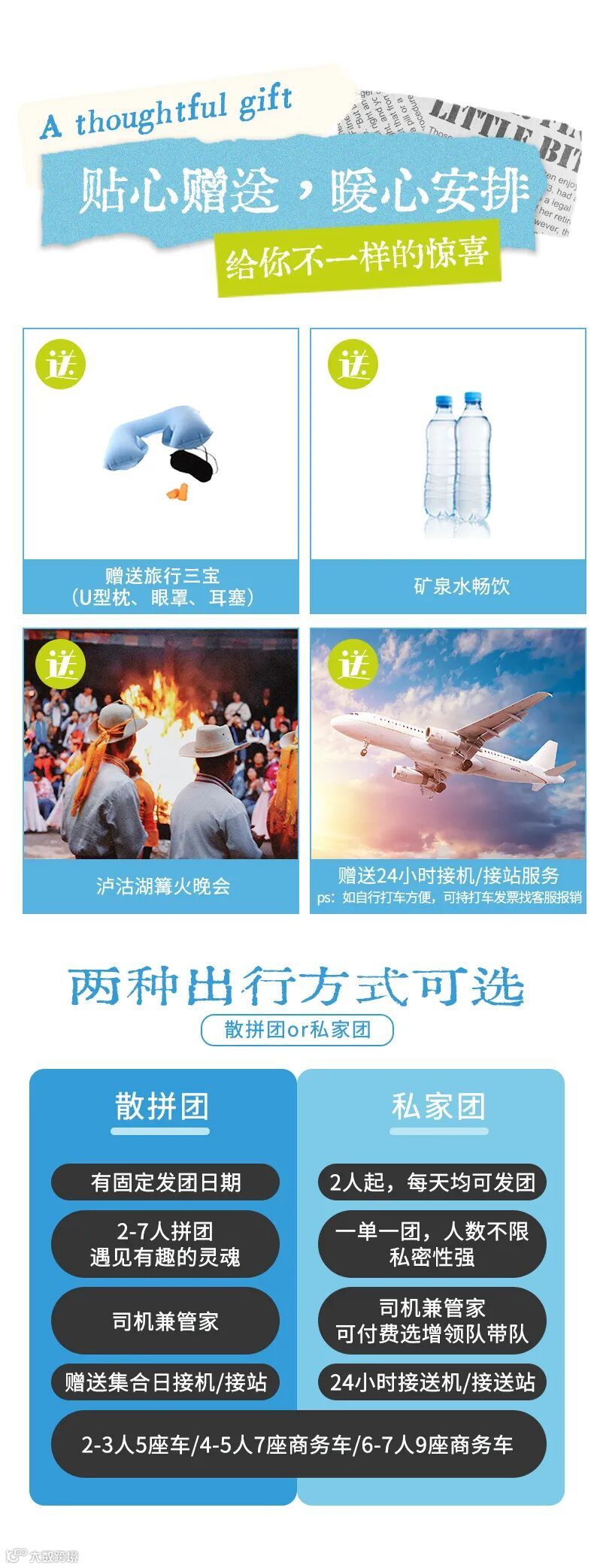 2、泸沽湖的行程时间和游览顺序仅供参考,司机师傅会根据客流情况灵活调整游览顺序,游览景点不做减少;