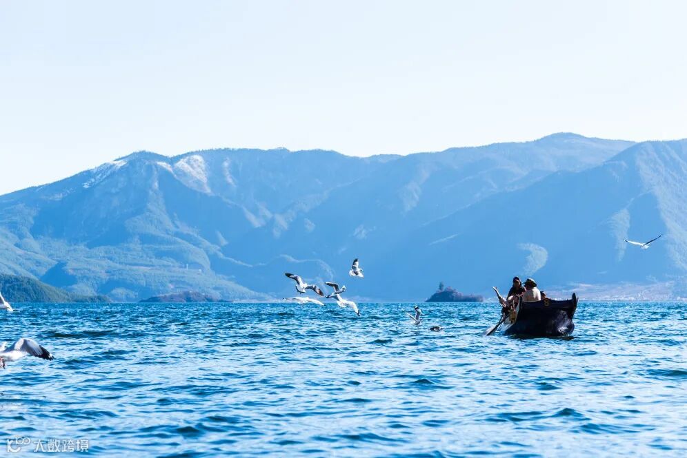 12:30 抵达“高原明珠”【泸沽湖】,首先映入眼帘的是【泸沽湖全景】,每年6月-8月期间,湖里水性杨花盛开,花朵如冰雪般净白,有风拂过又摇摇欲坠,宛若人间仙境。