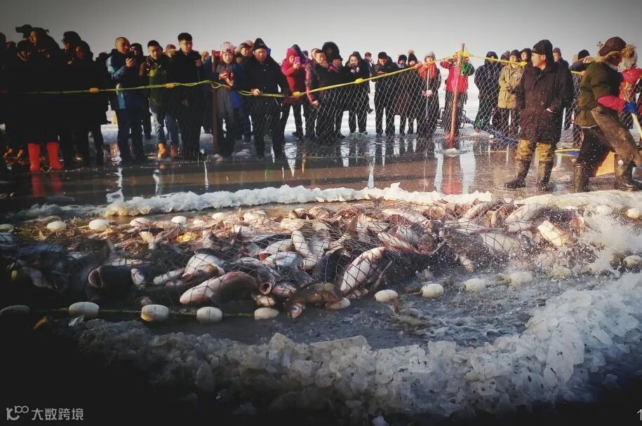 13:30在这里为大家安排【冰面冬捕】(冬捕项目1月1日-2月10日结冰安全期期间安排,其他时间无法安排,乘坐东北特有的交通工具【雪地长龙】在冰面漂移。体验东北特有的“速度与激情”【滑雪圈】。