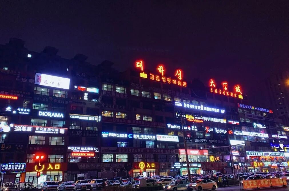 19:00 抵达延吉,夜幕降临延边大学正门对面的【网红弹幕墙】,算是延吉目前的标志性地标了,前来拍照打卡的人络绎不绝。尽管延边大学内部不可以进入,但对面的这面墙却格外吸睛,尤其是晚上灯光亮起霓虹闪耀,地方独有的异域感很强。