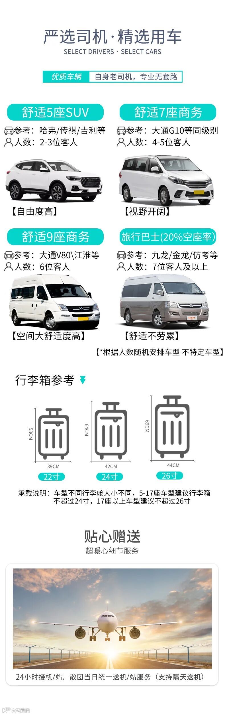 6、赠送24小时接飞机或火车服务(支持隔天送机)。