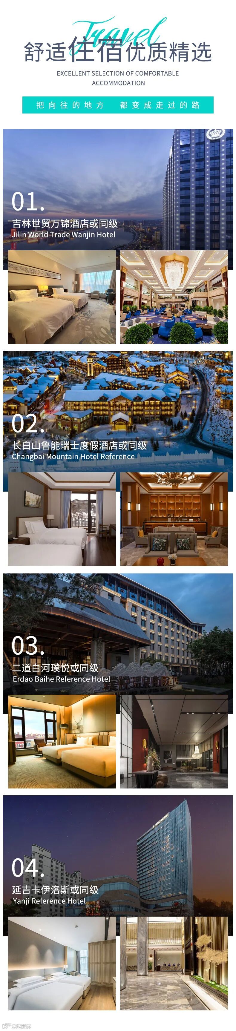 备注:钻级标准参考携程钻级标准,东北经济发展较差,酒店已经是我们精心挑选的,但是和大城市同级别酒店相比各方面略差一些,敬请您谅解;
