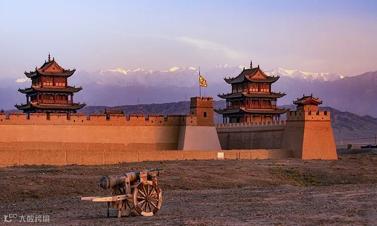 10: 00我们先抵达【嘉峪关关城】,从关外看去,巍峨雄壮的关城及瓮城伫立在夕阳之下,一派庄严。几百年前的大青石,依旧在这里默默地承载着历史的厚重。 嘉峪关外,是延绵的祁连山脉,远处的山顶可见积雪,天空的灿烂云霞将嘉峪关关城衬托地更加壮美。