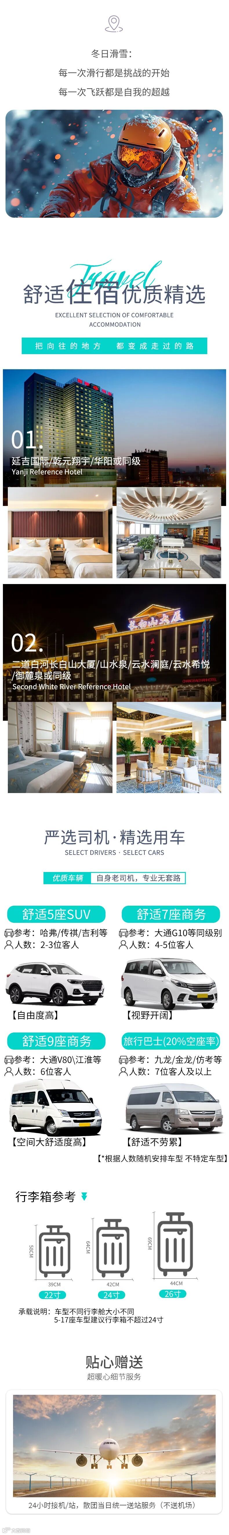 二道白河-雪地漂流-滑雪(30KM,车程约1小时)-二道白河高铁站(长白山站)(30KM,车程约1小时)(可跟车回延吉)