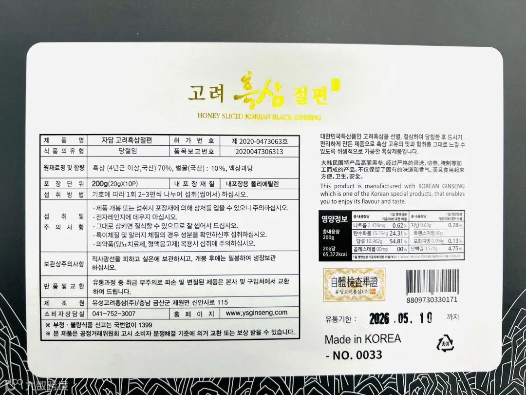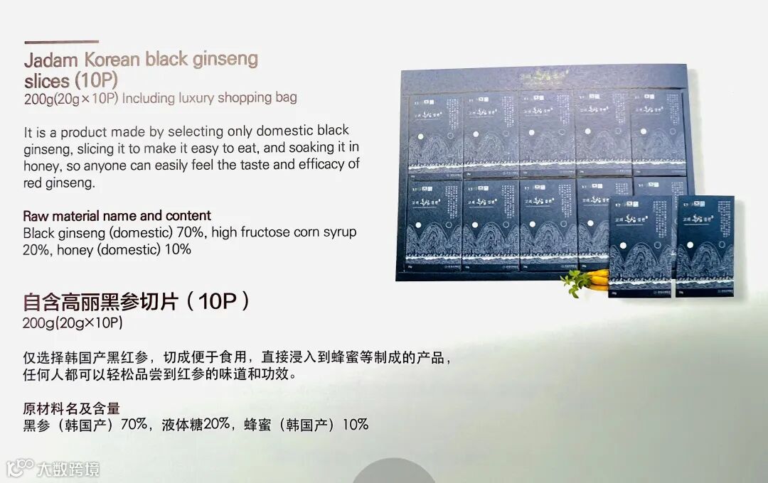 仅选择韩国产黑红参,切成便于食用的大小,直接浸入到蜂蜜等制成的产品。任何人都可以轻松品尝到红参的味道和功效