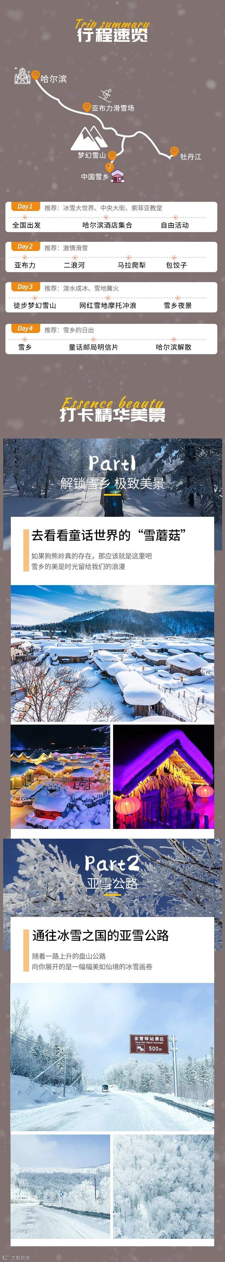 4、门票:亚布力2小时滑雪包含雪鞋雪板雪杖使用、雪乡门票+往返环保车、梦幻雪山徒步穿越门票;