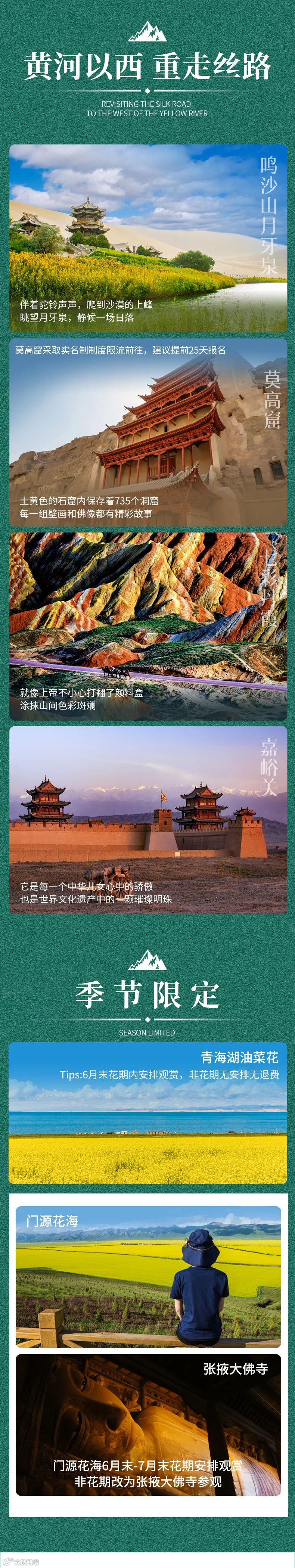 3、如非门源花期则改为上午前往张掖大佛寺参观游览,取消门源花海行程。
