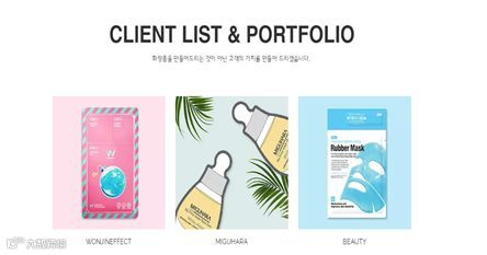 主要项目是3种类型的面膜,目前在韩国与中国均有销售。公司的目标是制造安全女性用品,例如:护肤品,日常用品,生活用品等