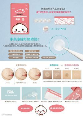 家美康主要销售祛痘的痘痘贴,这是韩国皮肤美人的必备品!