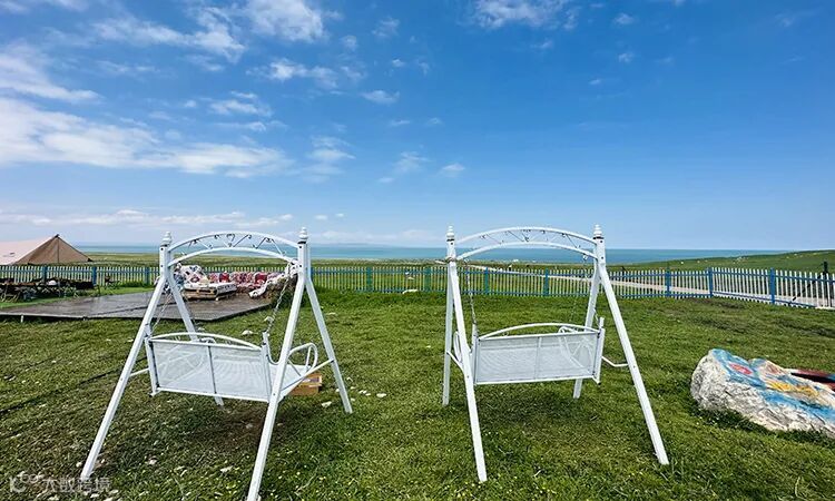 15:00体验【青海湖下午茶】,坐在天幕之下吹吹风,眺望着近在咫尺的青海湖,蓝天白云湛蓝湖水,享受惬意的慢节奏假期。