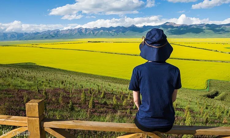 15 : 30适时到达【门源花海】(花期预计为6月末到7月末)。远方耸立着雄伟的祁连山脉,山脉的峰顶上【岗什卡雪山】(也称冷龙岭)白雪皑皑,百里油菜花海就在祁连山和达坂山之间呈现出一幅气势磅礴的天然画卷,这里可欣赏中国最壮观的油菜花海景观