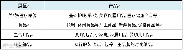 ○ 展区规划:美妆&医疗保健,食品,生活用品,服装饰品为主