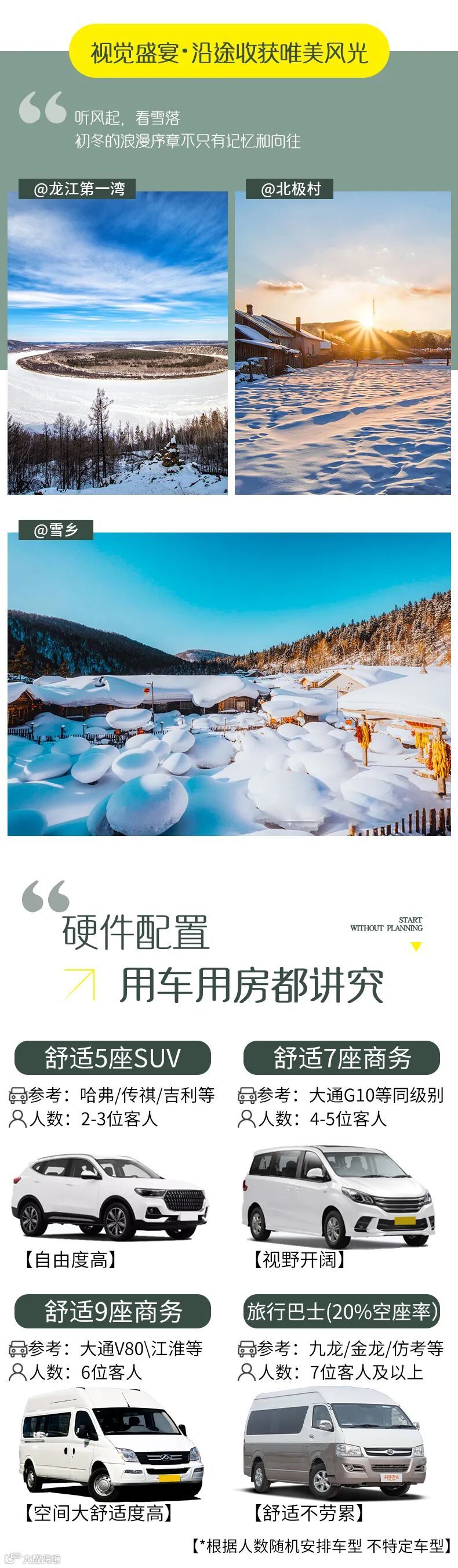 4、赠送雪乡雪地蹦野迪(如遇景区原因或大风等天气原因不举办不退费用)。