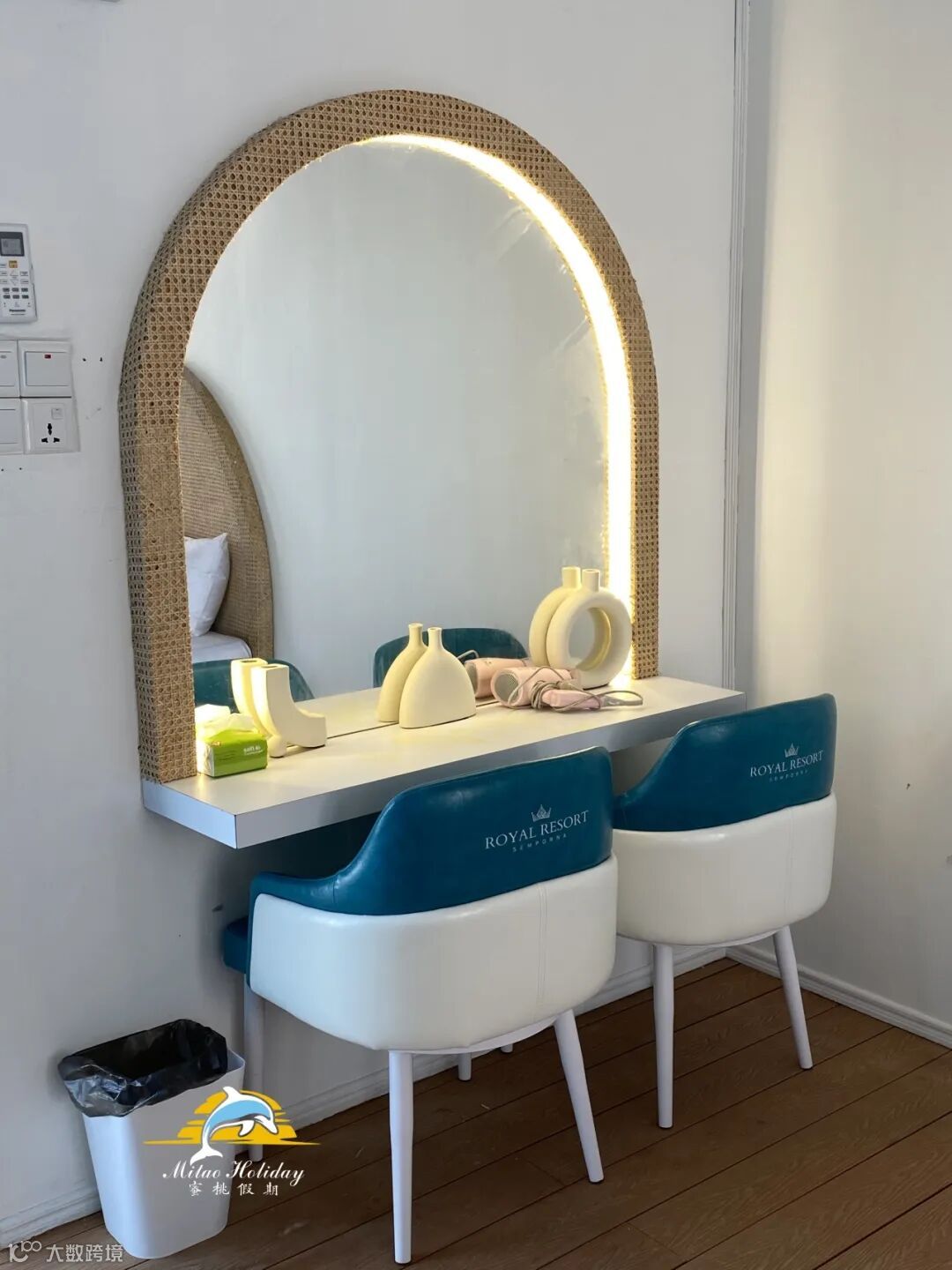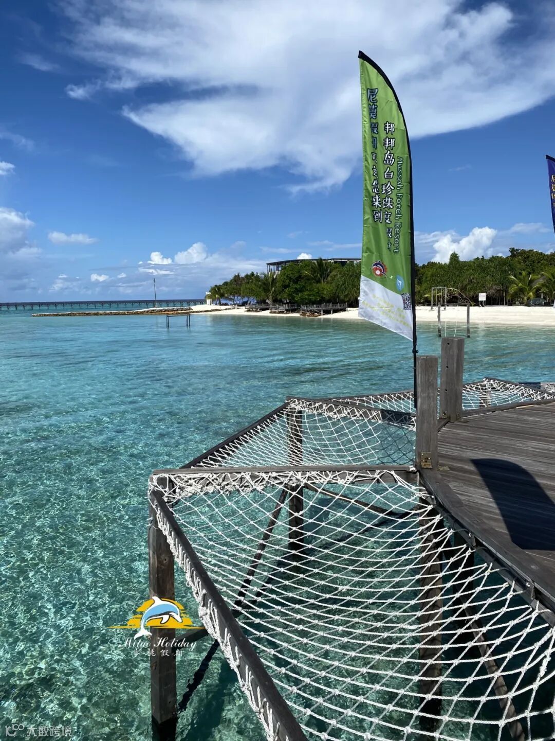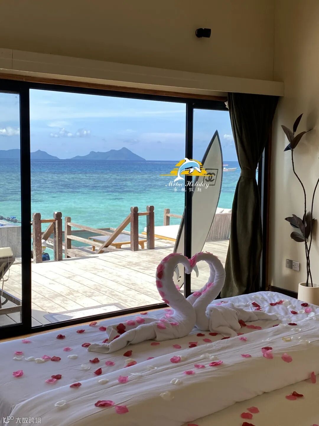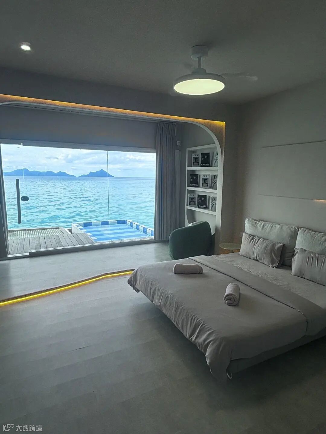 度假村整体是爱心型设计,到处都建有浪漫元素,情侣蜜月首选。房间100平起,有6米左右超高层高,硬件用料新。房间细节贴心,阳台可直接下海,有秋千等多种玩乐设施,还有免费的桨板等活动。