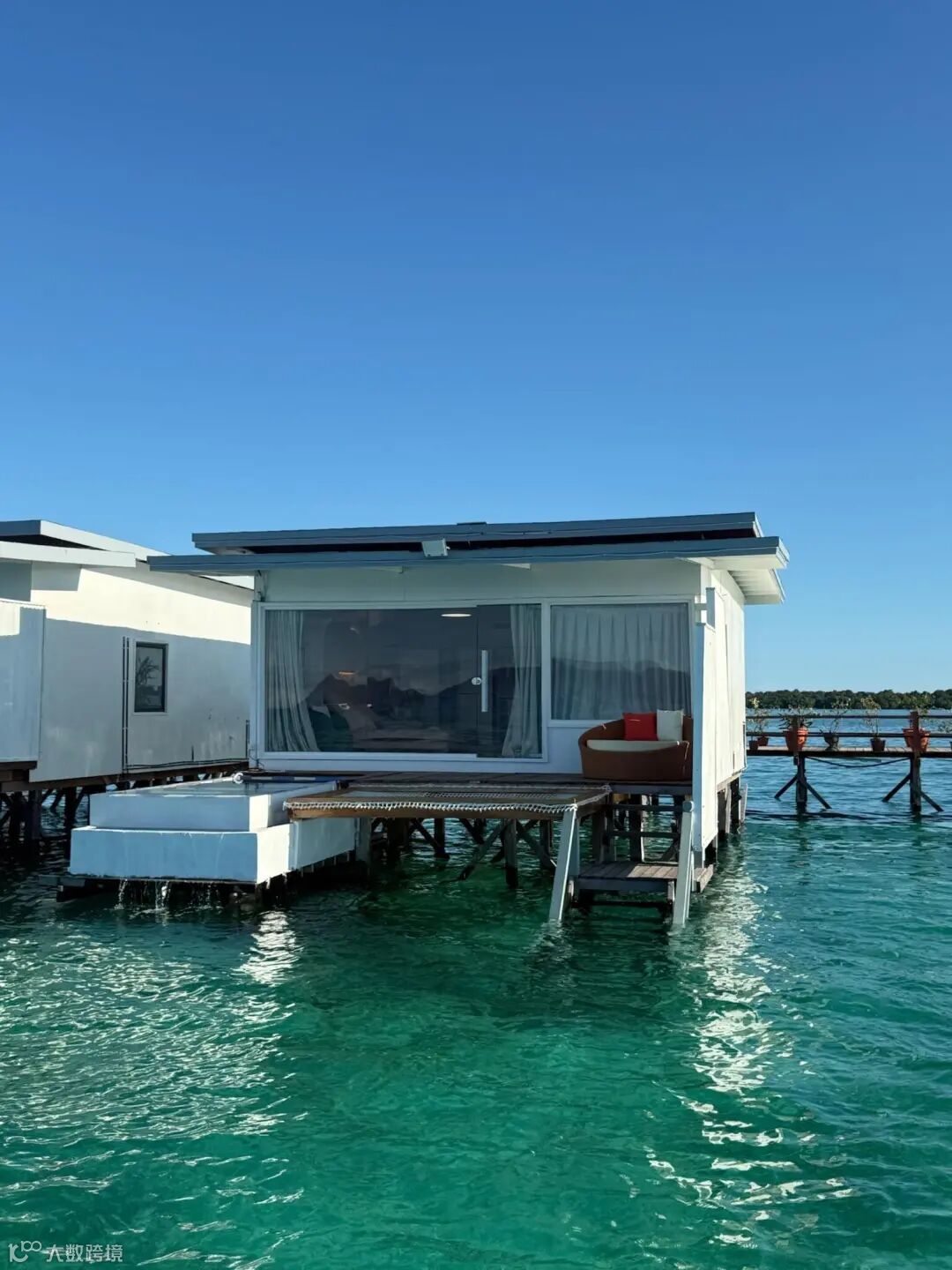 仅10间独栋水屋,即使住满也不会拥挤,很是安静私密,非常适合情侣蜜月入住。外观独特。房间宽敞明亮,有海景浴缸等高品质配置。可从房间露台直接下海浮潜,还有海钓、玻璃船等项目免费畅玩,公区打卡点多拍照很出片!