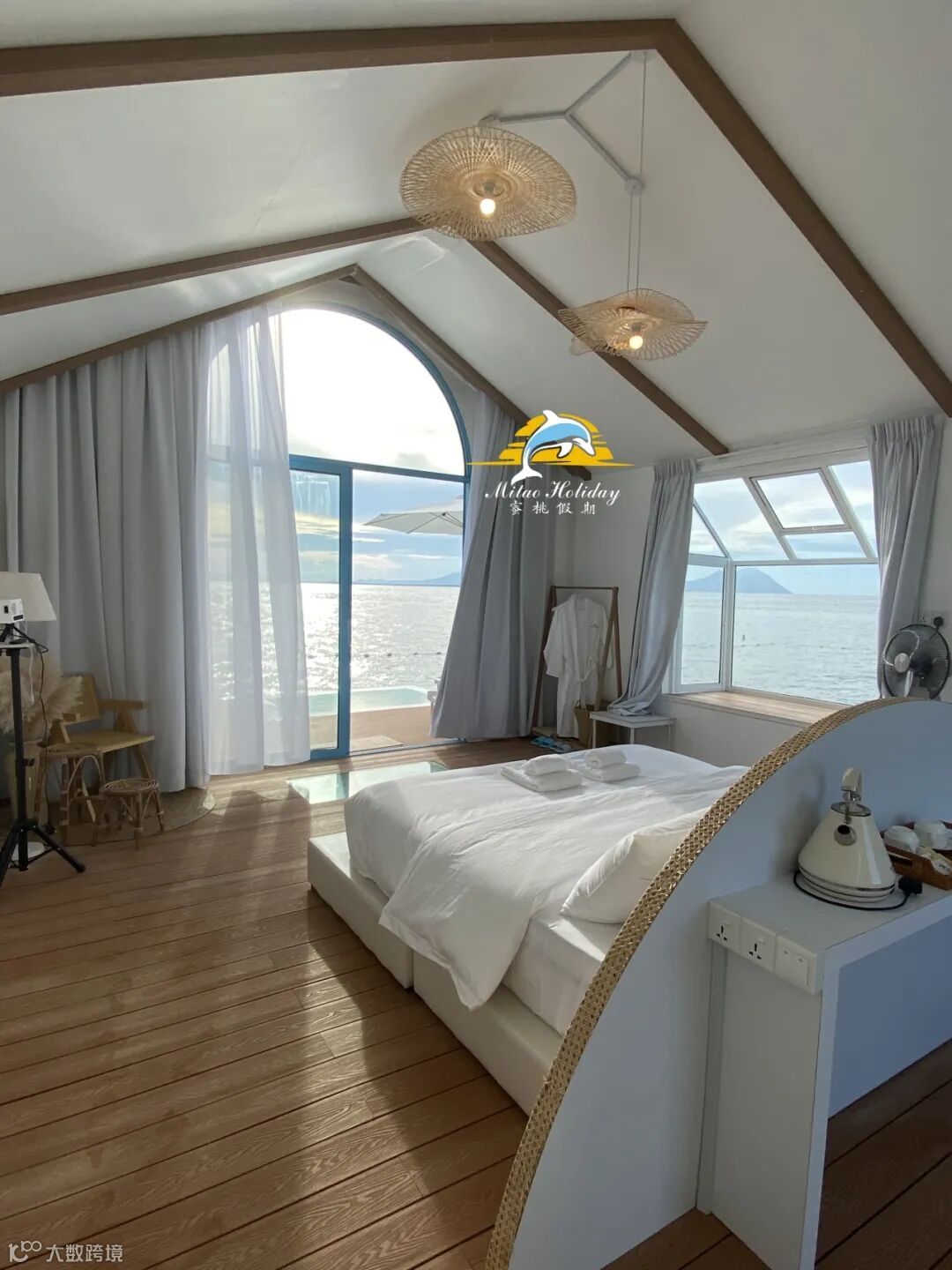 100多平独栋海景水屋全新开业,全新开业的房型配备8米超长私人泳池和1.8米大床,从房间就可以直接下海浮潜,躺在床上就能欣赏180度全海景!重点是,度假村位于珍珠岛对面,透明玻璃海域超绝!是目前为止唯一一家能偶遇野生水獭的度假村!不仅有浆板,玻璃船,海钓等娱乐活动,退潮后还能赶海!老板是国人,餐食更符合国人口味!还有一对一中文管家全程服务,出行无忧~