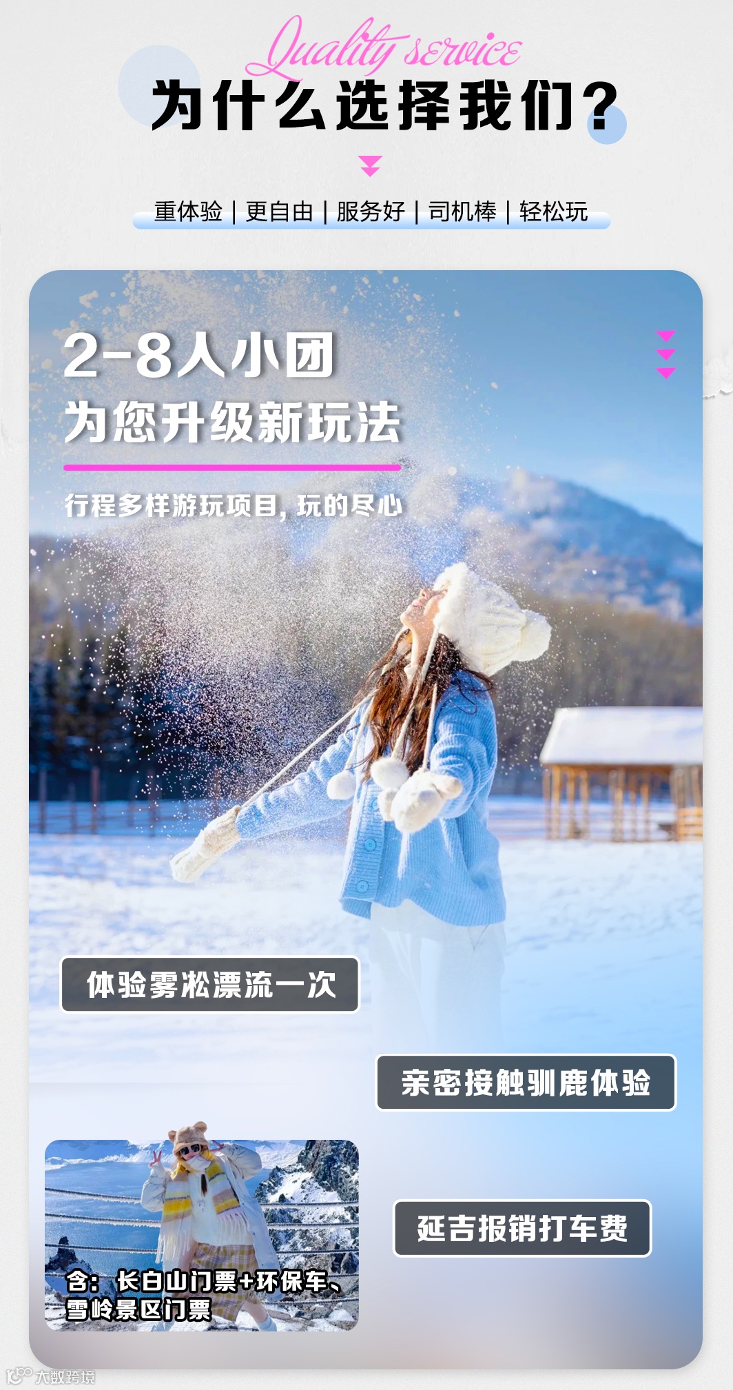 6、赠送:接机/接站报销打车费 、雾凇漂流一次、长白山酒店温泉(赠送项目不退不换不折现亦不接受投诉);