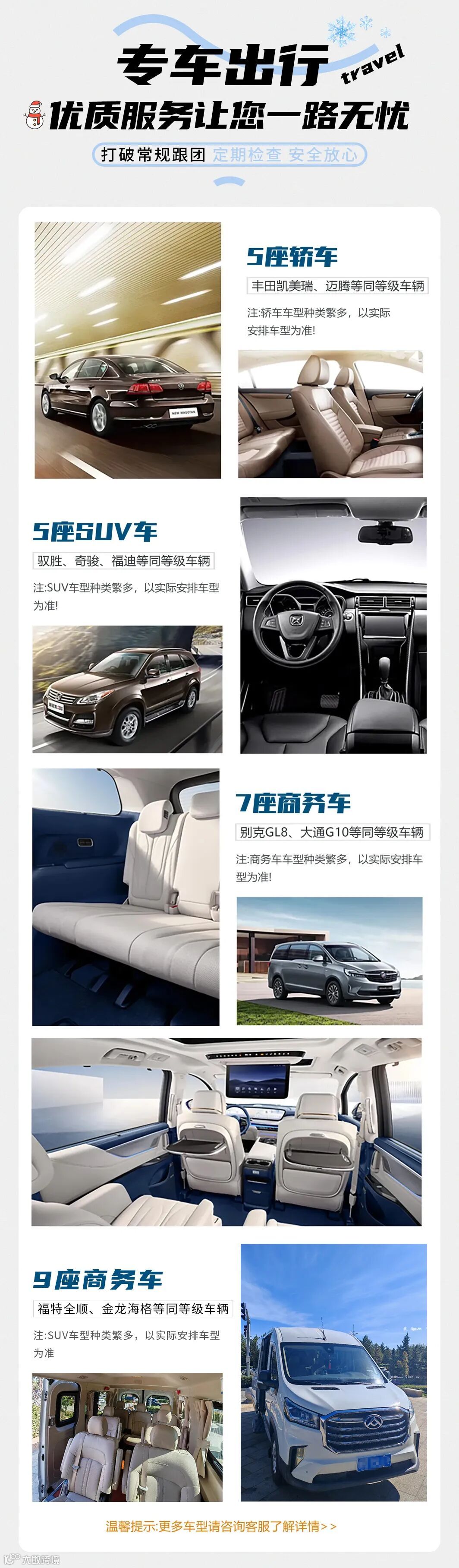 4、领队:全程司机兼领队/向导,仅负责行程活动中接待服务(非持证导游,不提供景区讲解服务不陪同进景区);