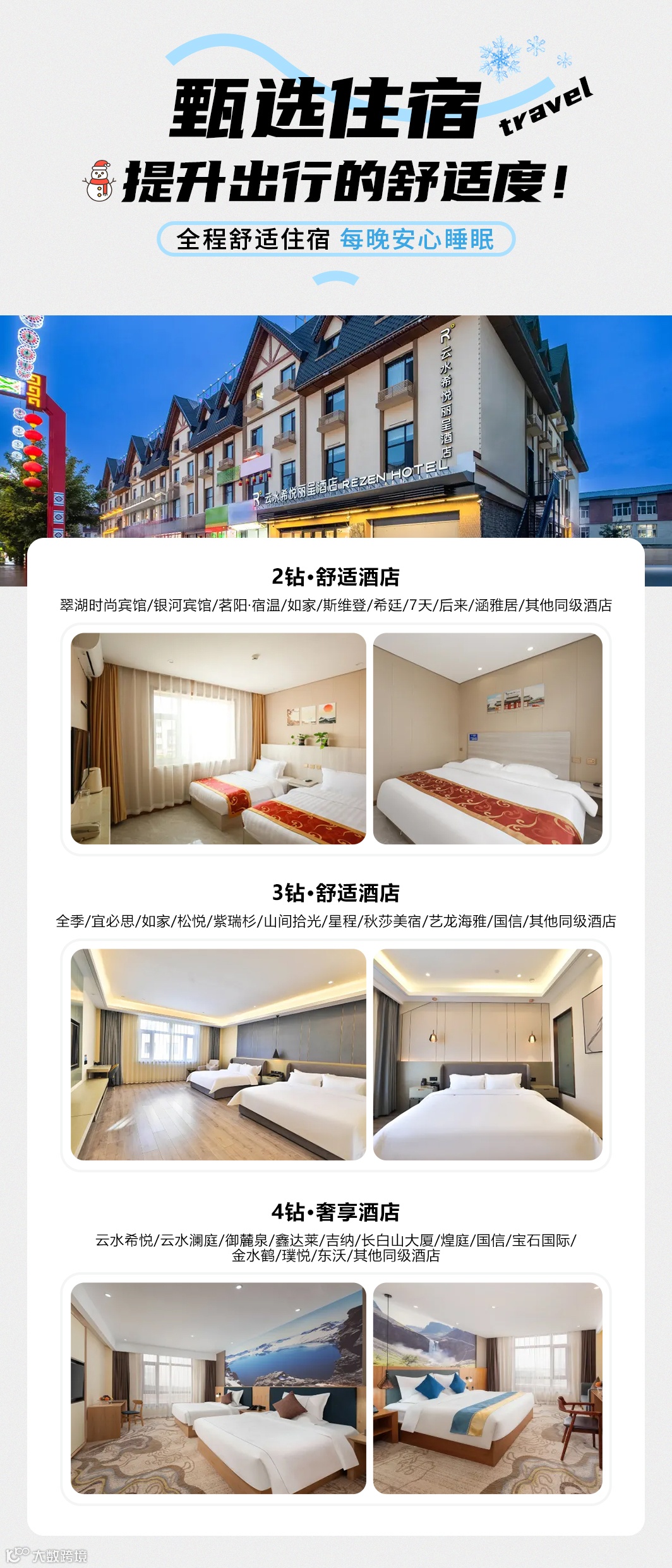 4钻:云水希悦/云水澜庭/御麓泉/鑫达莱/吉纳/长白山大厦/煌庭/国信/宝石国际/金水鹤/璞悦/东沃/其他同级酒店