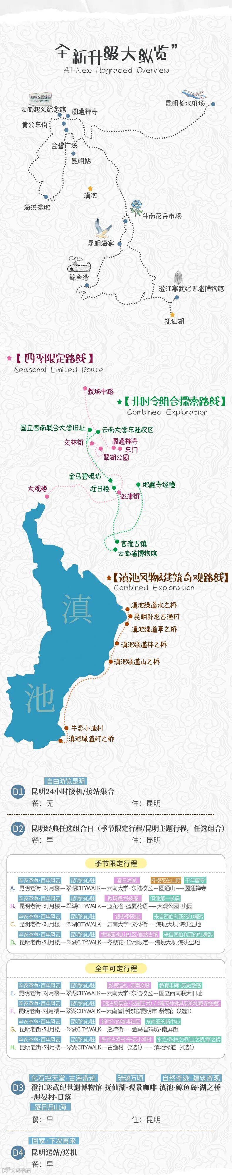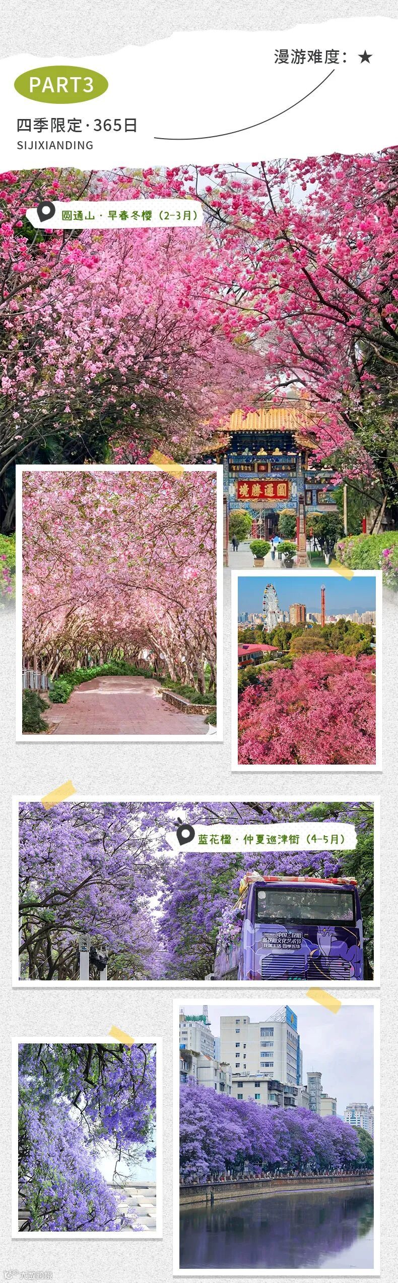 A、春季限定:圆通山·圆通禅寺·昆明动物园·云南大学(冬樱花·海棠花)