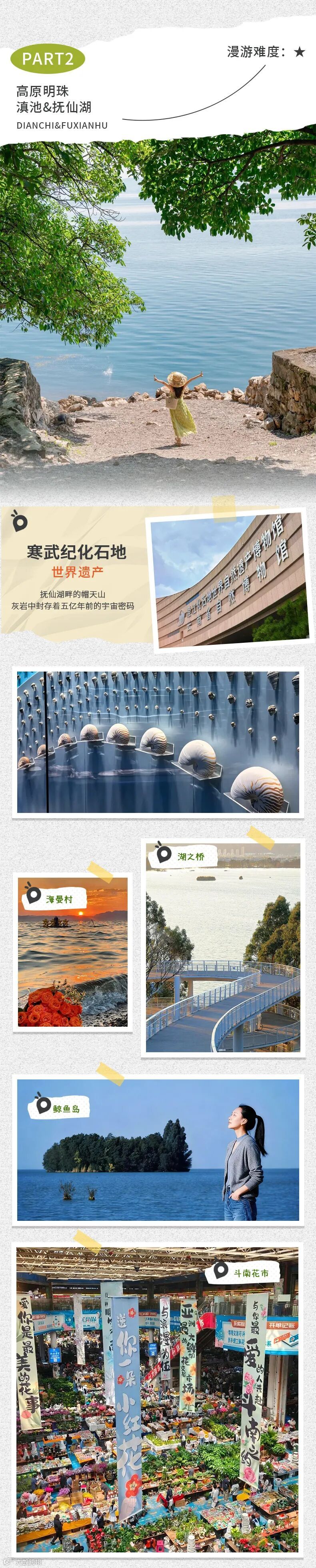 澄江寒武纪世遗博物馆-抚仙湖观景咖啡-滇池·鲸鱼湾-海晏村-斗南花市,住昆明(约200KM,车程约3小时)