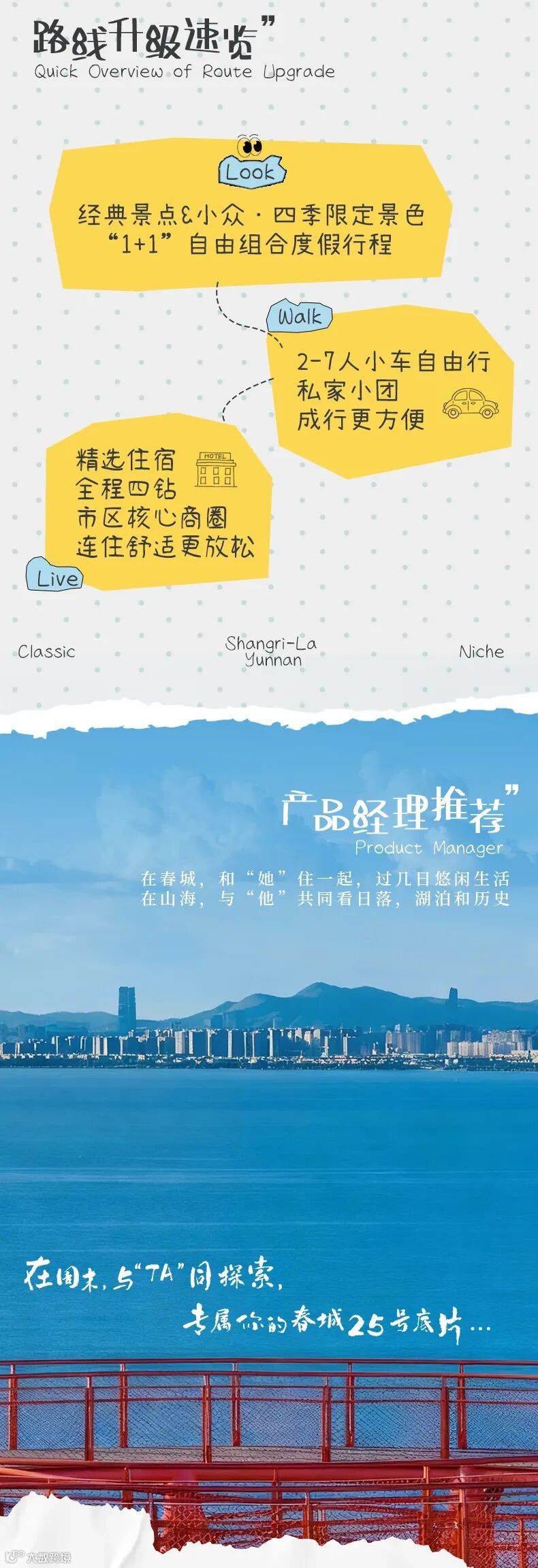 •交通:导航至昆明市西山区观景路(靠近滇池),从集合酒店打车约30元