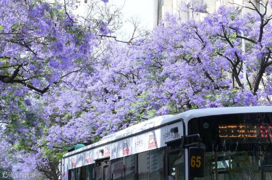 12:30 来到【教场路·蓝花楹】,五月初的教场路已成蓝紫色隧道,花枝蔽日,车流人潮皆沉溺于花影流光。无人机在花云间嗡嗡作响,穿傣装的少女旋起裙摆,惊落一阵花雨——春城以最嚣张的温柔,宣告夏日序曲的降临。