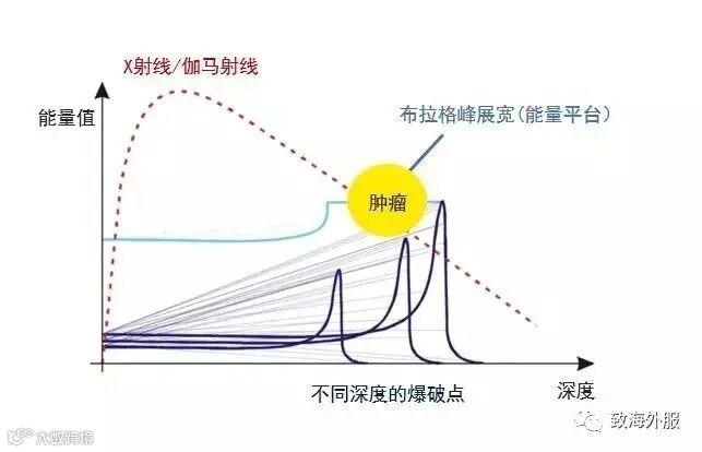 粒子线可以经过对肿瘤所在位置深度的调节,在皮肤附近以及到达肿瘤之前抑制能量的释放,一旦到达肿瘤时便会瞬间释放大剂量的能量,经过肿瘤后又马上停止释放能量,形成名为“布拉格峰”的能量释放轨迹。