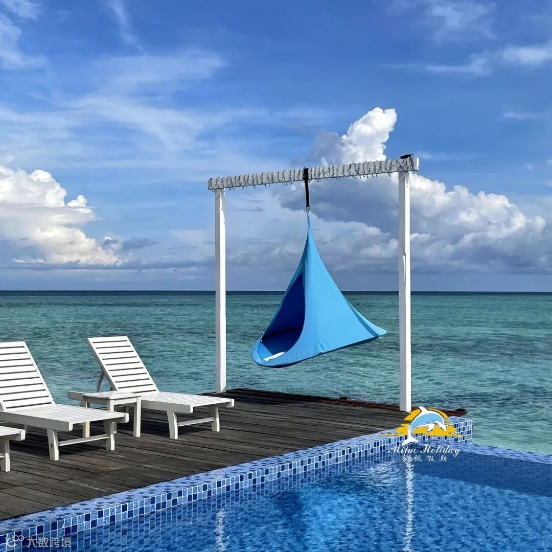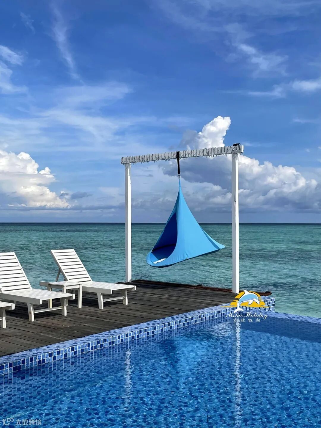 斑淡南纯白希腊风,简约大气!非常好拍!还有海边秋千、吊床,海景无边泳池,海景餐厅,都是拍大片的秀场!娱乐设施也很齐全,KTV、台球、游戏机、玻璃船、麻将等应有尽有,而且都是免费的,超值!