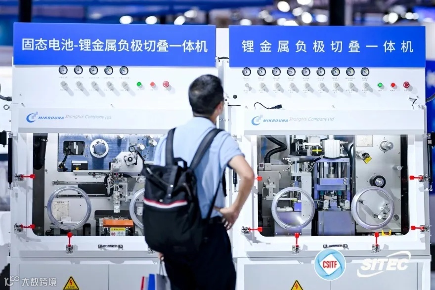 米开罗那(上海)工业智能科技股份有限公司(工商联企业)全国首发锂金属负极切叠一体机,该设备是固态电池关键工序段的核心设备。在手套箱保护下运行,克服了锂金属制片易受水氧影响及切叠难度大的技术难点,为固态电池的高效生产和广泛应用提供了有力支持。