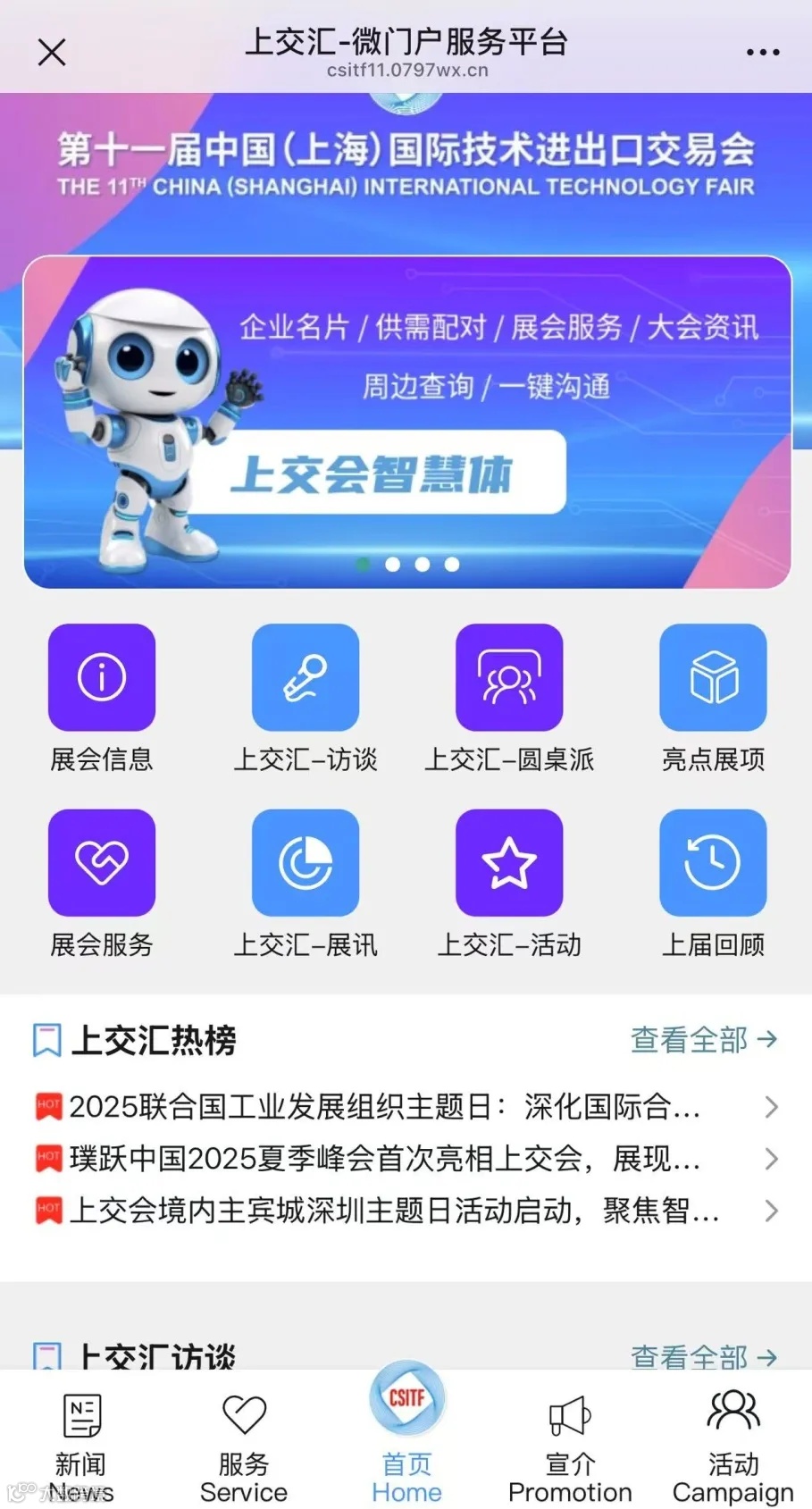 想获取最及时、最全面的上交会资讯?请关注上交会微门户服务平台!这里汇聚了热搜榜单、新闻资讯、上交汇-访谈、上交汇-圆桌派、上交汇-展商巡礼和上交汇-朋友圈等丰富功能,一站式满足您的信息需求。