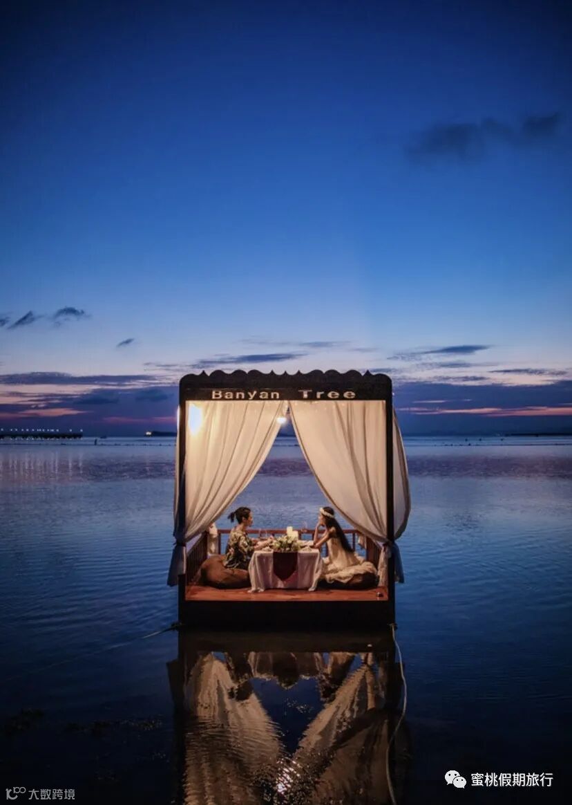 值得一提的是,酒店的海上漂浮晚餐是情侣度假来到这不能错过的打卡点。海上漂浮晚餐的设计初衷就是为了让来到这的人们“逃离”喧嚣,拥抱自然,纵享私密,在海上与心爱之人享受自由与浪漫。