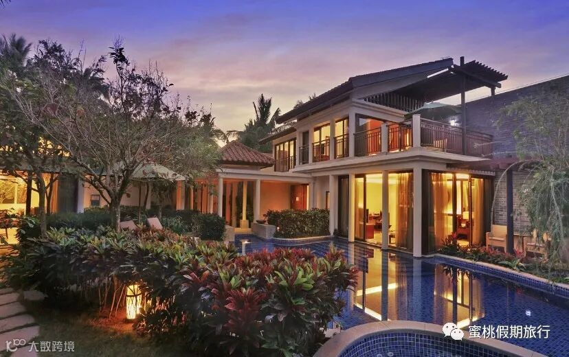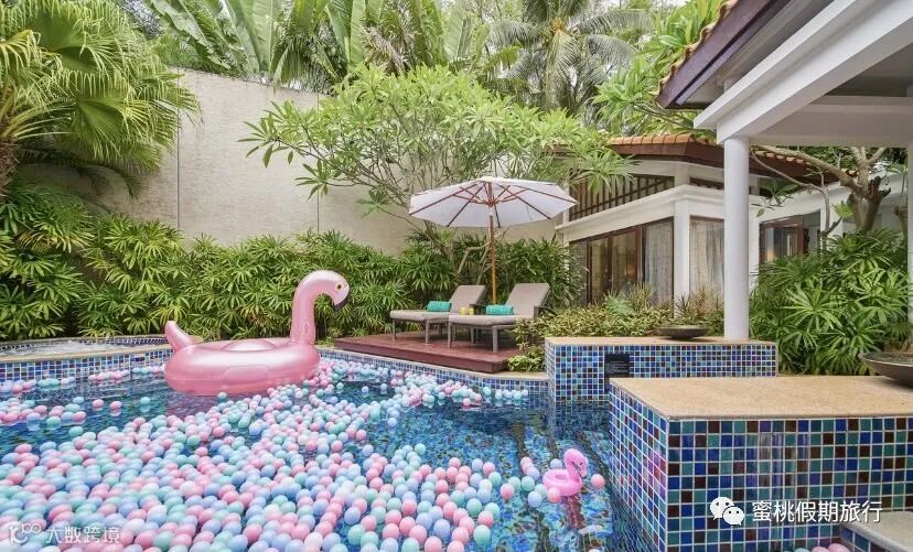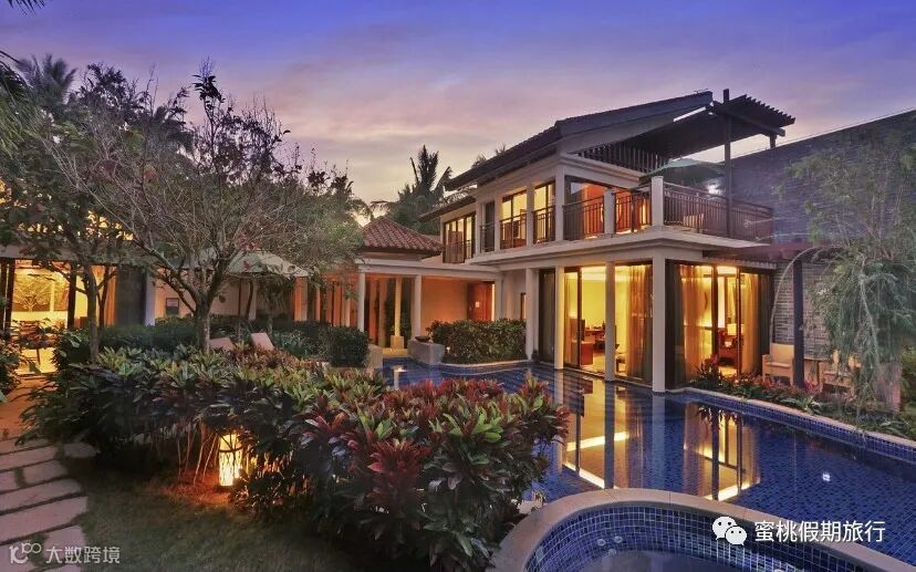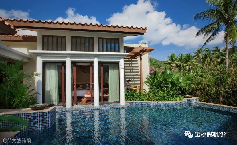 中国首家全泳池别墅度假村,272㎡起跳全泳池独栋别墅掩隐于青翠欲滴的热带花园之中,是很多明星夫妻度假的选择;