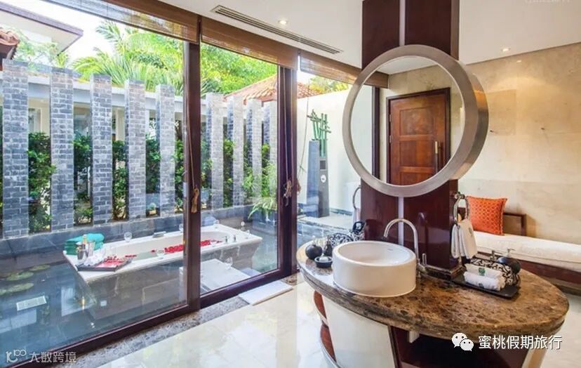 值得一提的是,三亚悦榕庄酒店除了郁郁葱葱的热带景观,穿过酒店里的茂密植被,就可以来到沙滩,眼前的光景才真正让推推叹为观止。