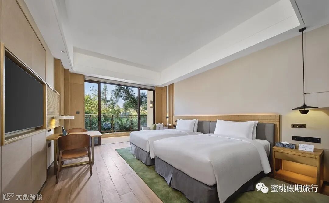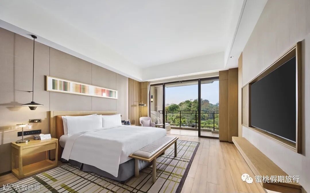 酒店共拥有261间现代时尚的客房、套房,每间客房都独立阳台及景观落地窗,让你拉开窗帘就能拥抱美景,与温泉、热带园林为邻,尊享悦动的度假空间。