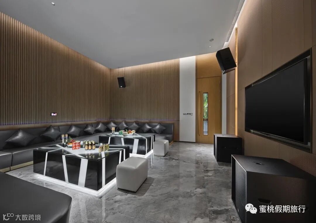 ▲“KTV”配备专业的视听设备,拥有2个宽敞的豪华包厢,同时可容纳15人及以上,与亲朋好友享受一场王者级别的K歌体验。