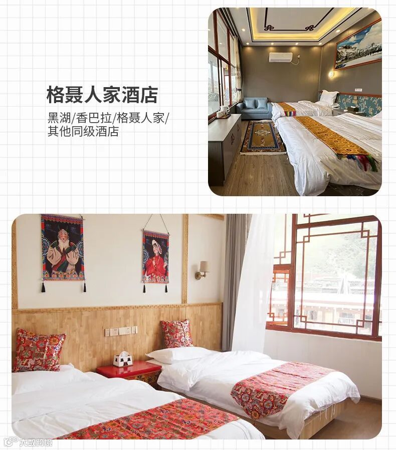 2、住宿:全程4晚精选酒店(独立卫生间、WIF、热水、电热毯,藏区条件有限,不能和城市相比);