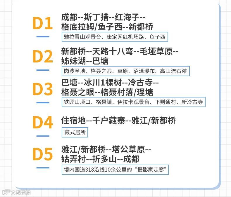 (1)如因格底拉姆封山无法前往,则将景点换为八郎生都。