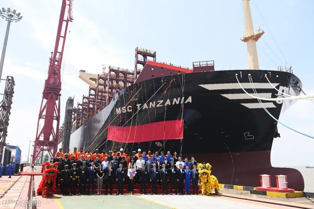 不久前,MSC成为全球首家拥有900艘船舶的公司,更以向1000艘迈进的扩张势头重塑全球航运格局。江南造船始终坚持客户至上、质量第一,通过技术创新和管理提升缩短建造周期,提供更具竞争力的交期。此前江南已向 MSC 高质量交付多艘船舶,今日交付的船舶将为MSC发展再添助力。期待未来双方深化战略合作,携手探索绿色船舶、智能航运等前沿领域,共同开启航运业发展的崭新篇章。