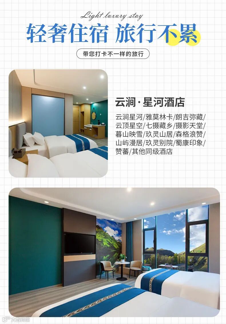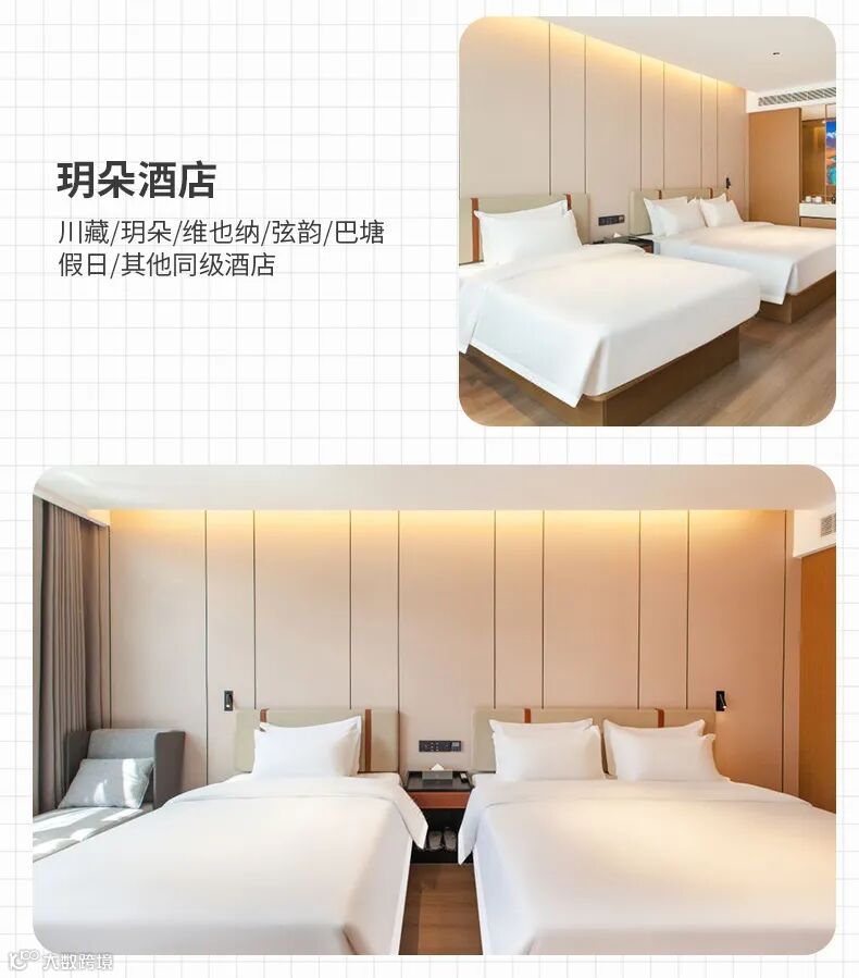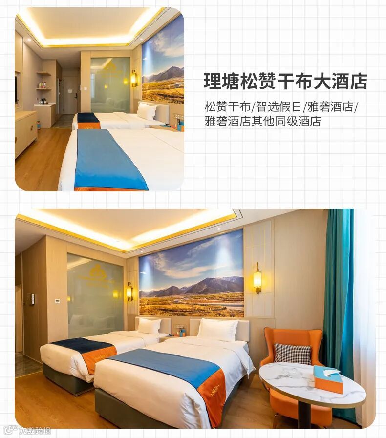 2、住宿:全程5晚精选酒店(独立卫生间、WIF、热水、电热毯,藏区条件有限,不能和城市相比);