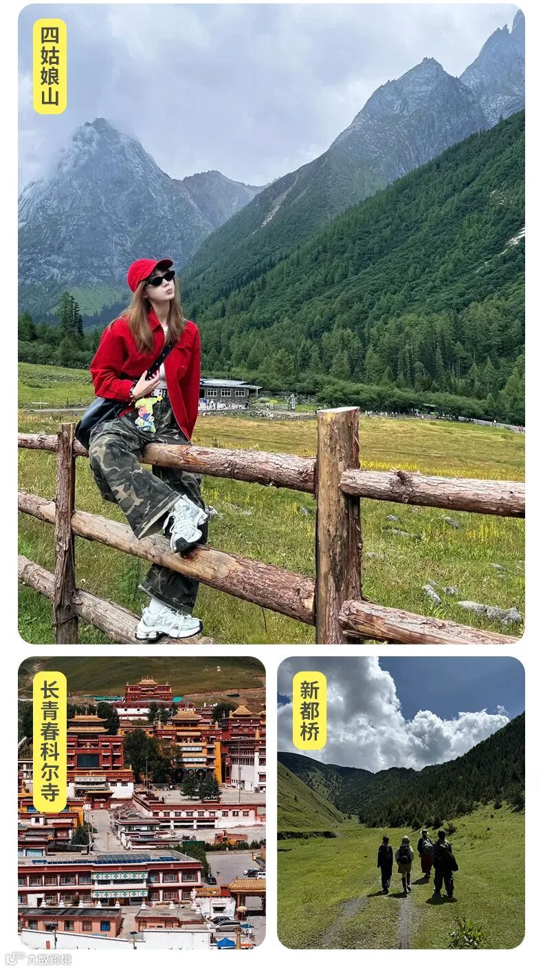 从蜀山皇后到云海牧场,开启一场与雪山、森林、星空的深度对话,她被称为“东方阿尔卑斯”,是横断山脉的明珠,四座雪峰如四位圣洁的少女,守护着川西的云海、森林与海子。这里春有高山杜鹃灼灼其华,夏有绿毯牧场牛羊成群,秋有彩林泼墨层林尽染,冬有银装素裹静谧如诗。走进四姑娘山,便是走进一场关于自然、信仰与自由的终极浪漫。