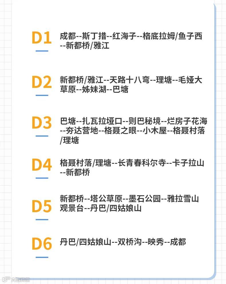 新都桥-天路十八弯-理塘-毛娅大草原-姊妹湖-巴塘 |