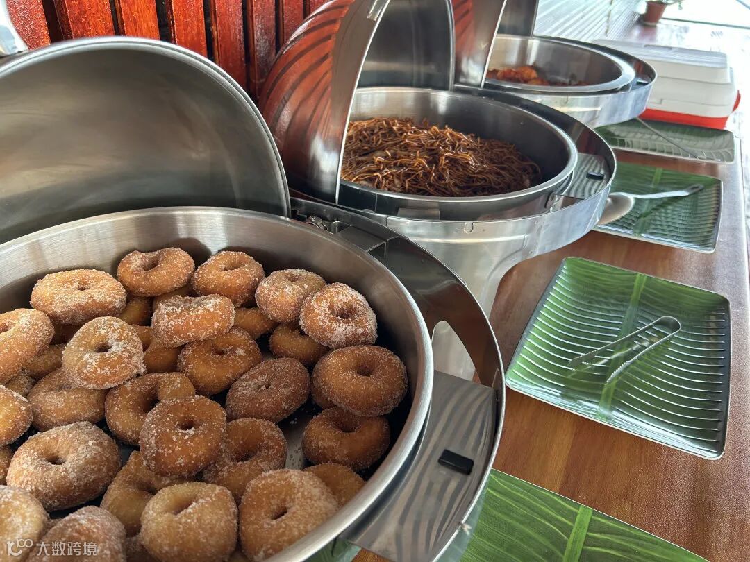 提供每日三餐,主餐包括海鲜,鸡肉牛肉或鱼肉及青菜等荤素搭配至少六种饮料包括咖啡及奶茶等饮品