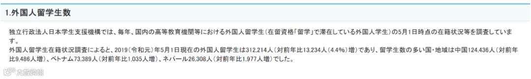 根据日本文部科学省统计,2019年5月1日在籍的外国留学生共有31万2214人,其中来自中国的留学生最多,在籍的共有12万4436人。
