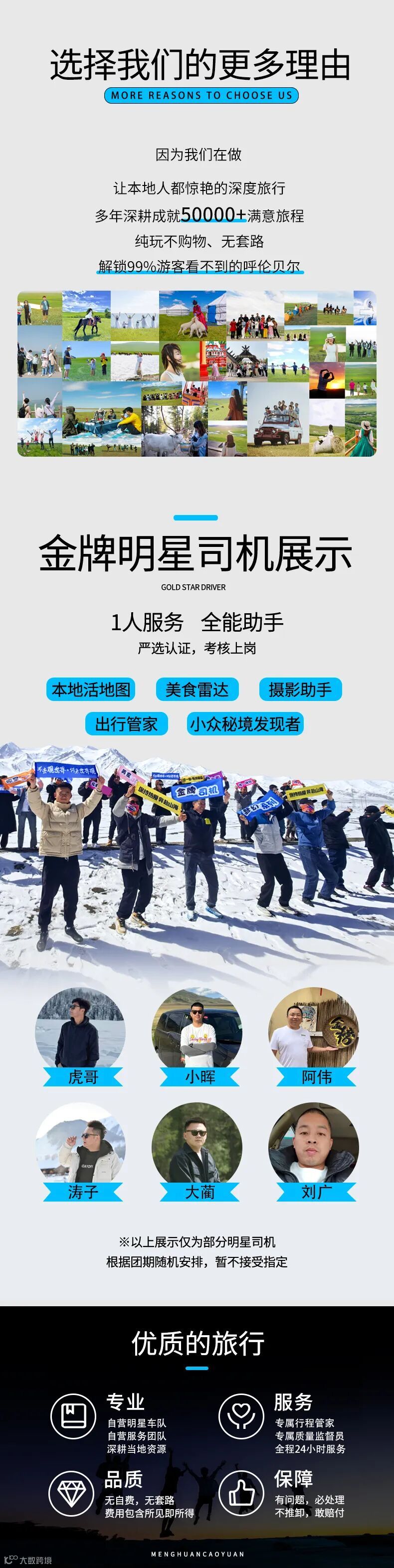 5、司机兼管家:帮助大家购买门票,给团友游玩建议,无法进入景区和提供专业讲解等服务,敬请谅解;
