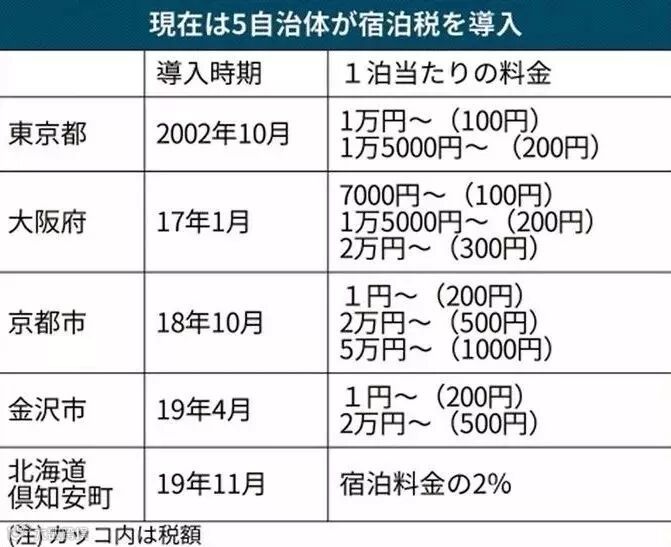 除了上涨的消费税外,东京、大阪、京都、福冈、九州等地还需额外支付“住宿税”。据悉,征收的住宿税将用于旅游振兴、申办国际会议等目的。